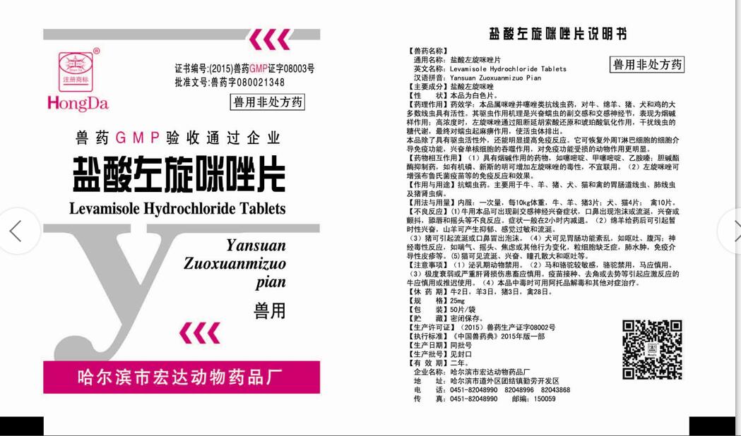 名稱(chēng):鹽酸左旋咪唑片